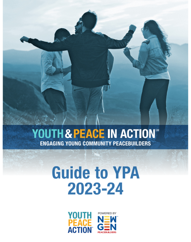 Materials and Resources View the Slides Used to Kick Off on July 12 View a Recording of the July 12 Kick Off Presentation Download the Guide to YPA 2023-24 Download the Training Young Peacebuilders booklet